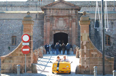 En el lado este de Montjuïc mirando al mar sobre un escarpado acantilado se encuentra la magnífica Fortaleza de Montjuïc, la cual es ahora es un museo militar. La fortaleza data del siglo XVII con adiciones del siglo XVIII. En 1842 la guarnición (fiel al gobierno de Madrid) bombardeó partes de la ciudad debido a disturbios previos. Sirvió de prisión, con frecuencia de prisioneros políticos, hasta el tiempo del General Franco. El castillo fue testigo de múltiples ejecuciones. En 1897 un incidente popular conocido como Els Processos de Montjuïc dió lugar a la ejecución de militantes anarquistas, lo cual llevó a una severa represión de la lucha por los derechos de los trabajadores. En diferentes ocasiones, durante la Guerra Civil Española, ambos Nacionalistas y Republicanos fueron ejecutados ahí mismo, prisioneros de cada bando cuando el sitio estaba ocupado por sus oponentes. El líder nacionalista catalán Lluís Companys i Jover fue ejecutado ahí en 1940, habiendo sido extraditado al gobierno de Franco por los Nazis.